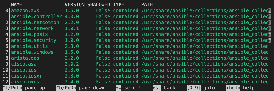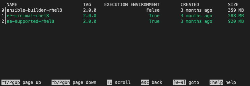 $ ansible-navigator doc -l -eei ee-supported-rhel8 -
