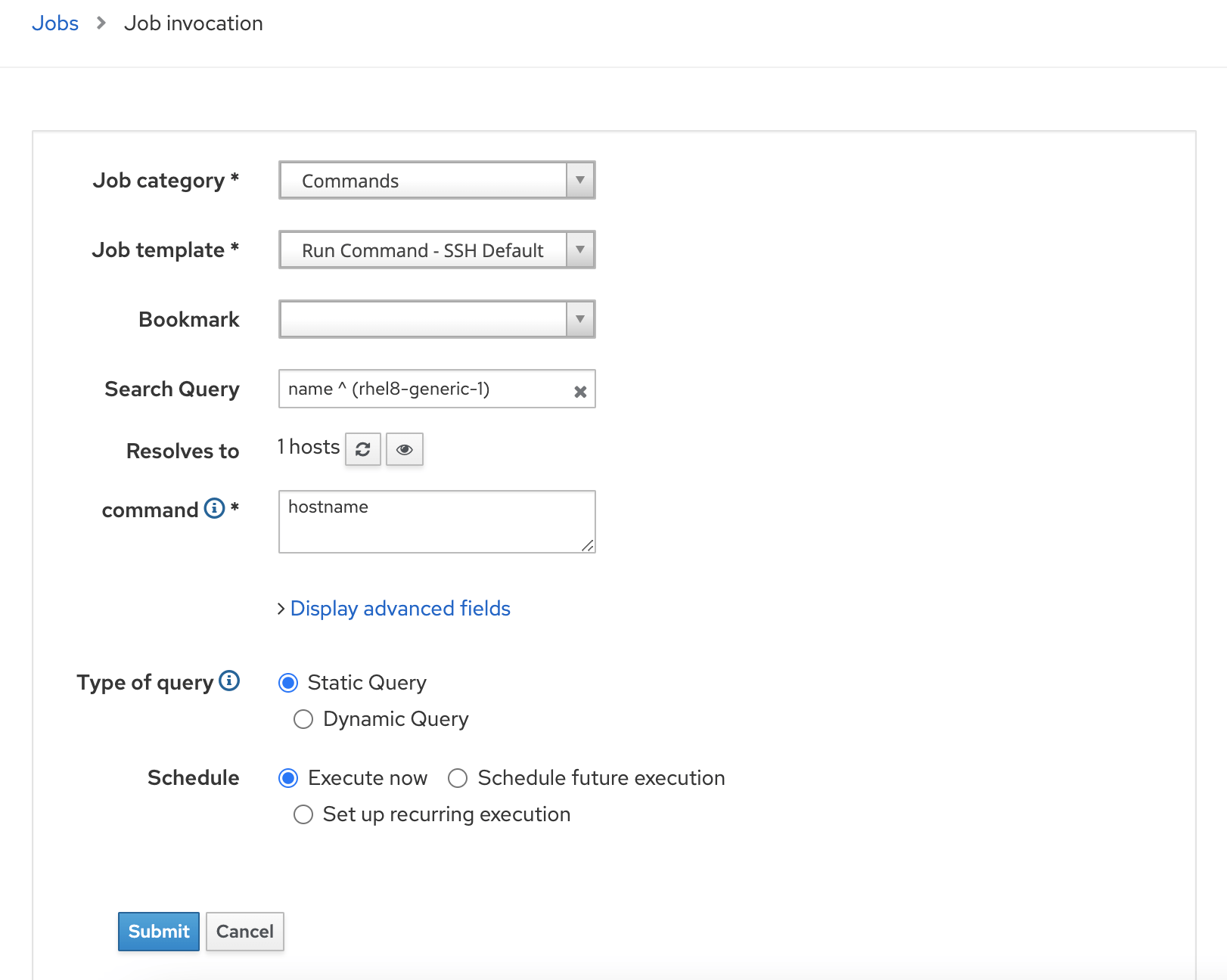 Apply appropriate filter to select the hostname and submit job. (You can use any commands to test like uptime , date or some simple commands.)