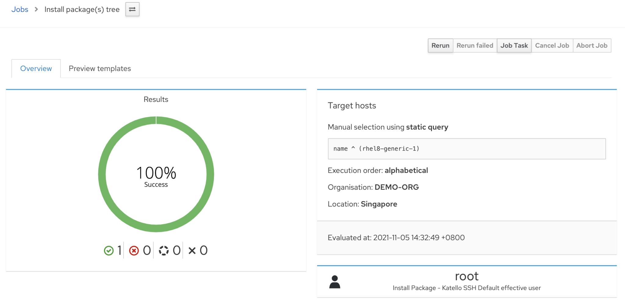 Wait for the job to be completed and verify on remote host as well. You can monitor the job anytime from the Monitor -> Jobs screen.