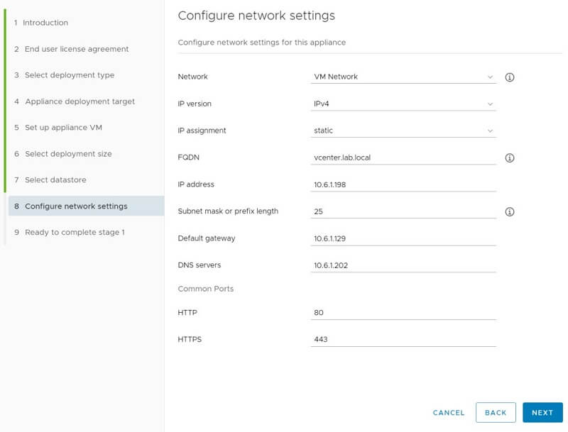 Configure vCenter Server network details