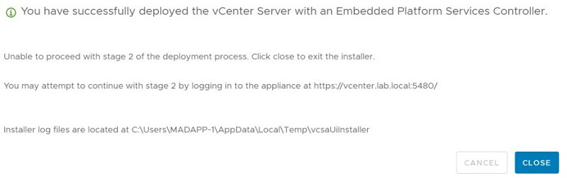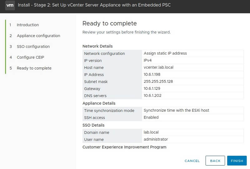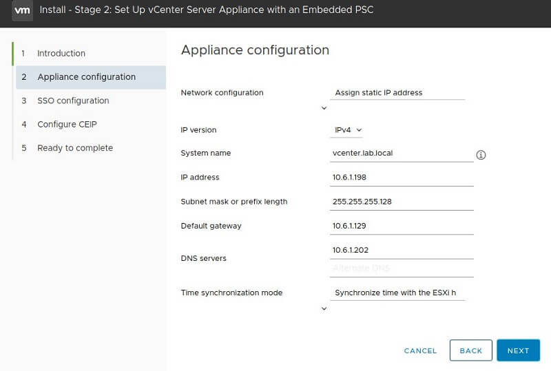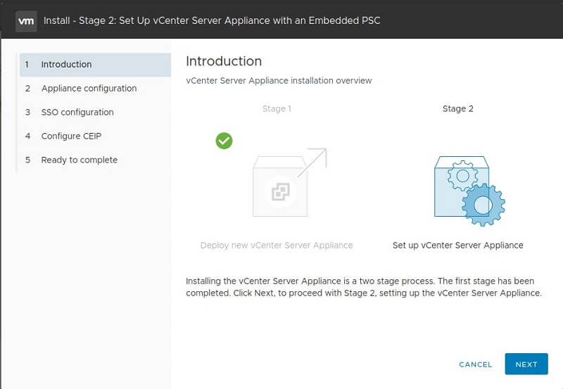 Install – Stage 2: Setup vCenter Server