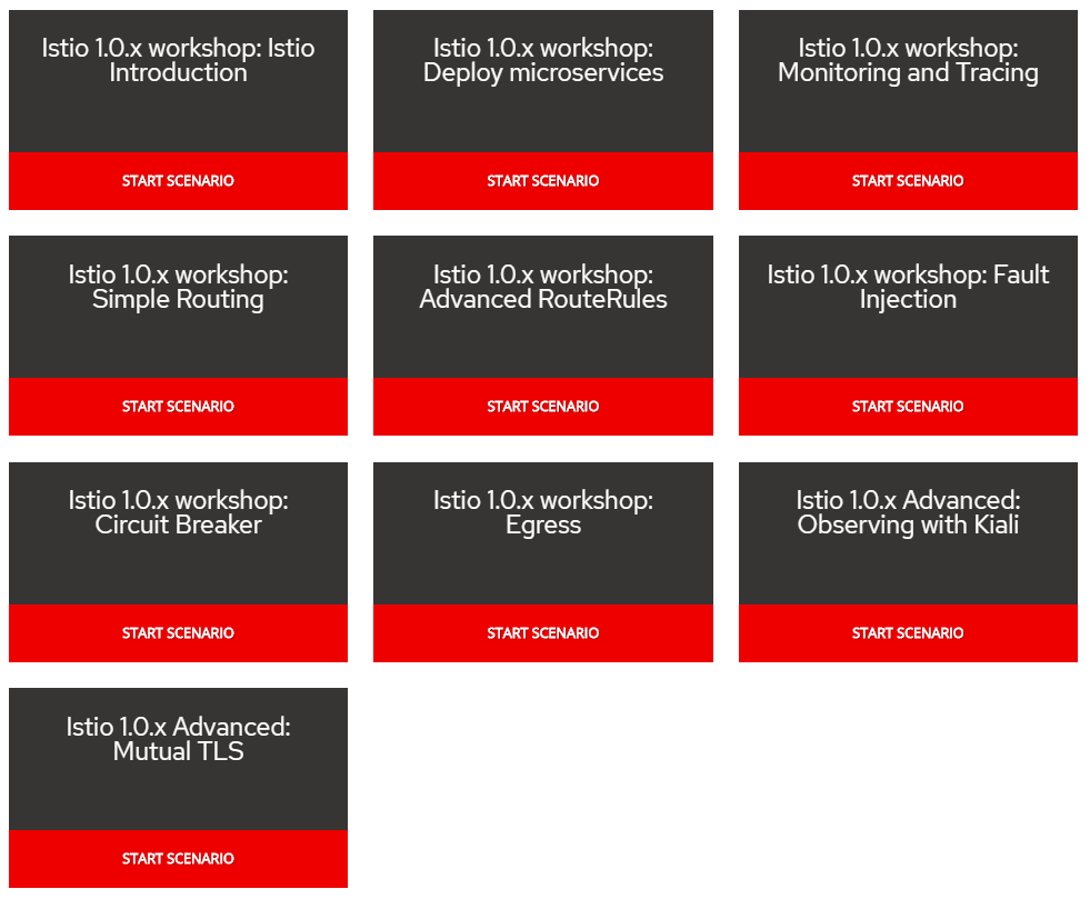 Service Mesh scenarios in OpenShift Interactive Learning Portal