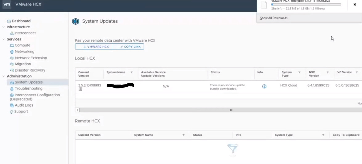 Detailed explanation of configuring HCX will make this article too long. Make sure once you installed HCX appliance, it must have latest version updated as the latest version fixed several bugs. So it is important to use latest version always.