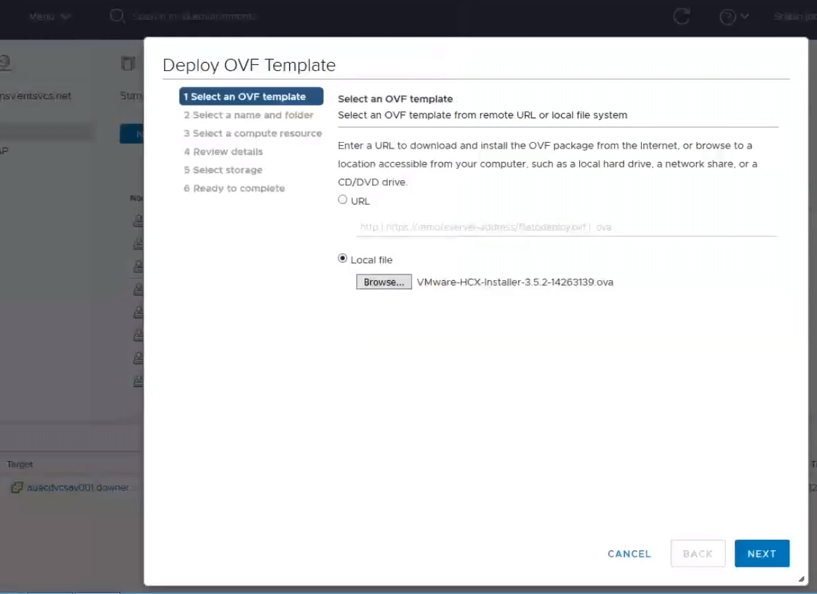 In HCX, source HCX Manager is known as HCX Enterprise Manager and target HCX Manager is known as HCX Cloud . Downloaded OVF has to be installed in target site first. HCX Enterprise Manager OVF file is then downloaded from the target HCX appliance ( explain in later section ).