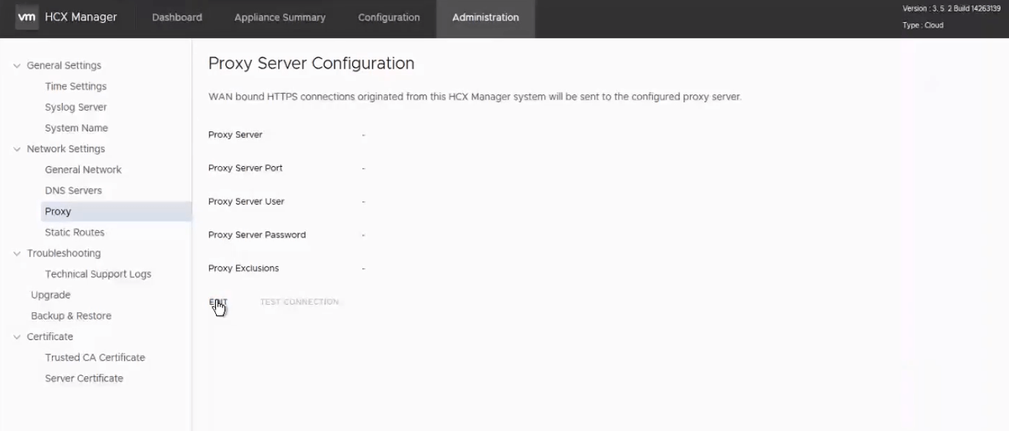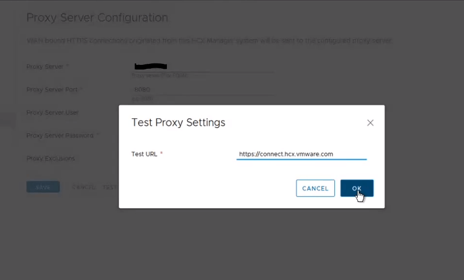 As you can see from above screenshot, it says optional. If your environment uses authenticated proxy, then HCX will not use this option at all. Hence, we need to first permanently configure proxy.